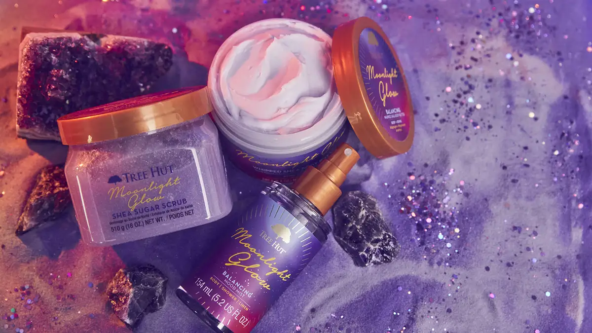 Tree Hut, reconocida por apostar por texturas ricas, aromas envolventes y fórmulas que celebran el ritual del cuidado corporal, presenta Moonlight Glow como parte de su colección Glow. Esta línea no solo está pensada para dejar la piel más suave, hidratada y radiante, sino para guiarte hacia un estado de equilibrio interior a través de ingredientes con historia, propiedades terapéuticas y una fragancia diseñada para relajar desde el primer contacto.